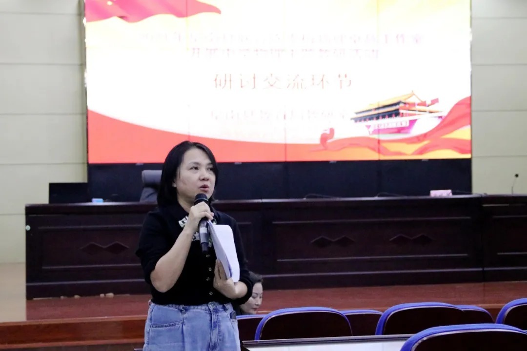 10月14日下午,陈素梅作《以观念统领的物理大单元教与学设计示范——大单元问辩教学》的报告。她阐述了物理大单元教学的概念、意义、方法、评价标准、如何实施等内容。帮助师生从纷杂的概念、规律、定理、公式中跳出来,以知识和技能为基础,研究真实、典型的科学过程,客观全面地理解物理课程的教育价值。